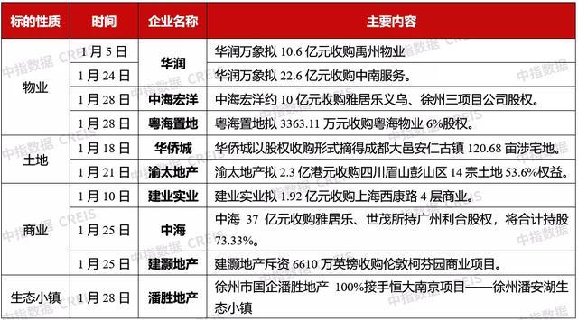 表:1月份部分房企收并购案例
