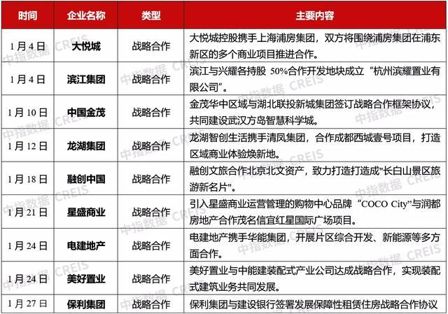 表:1月份部分房企合作案例