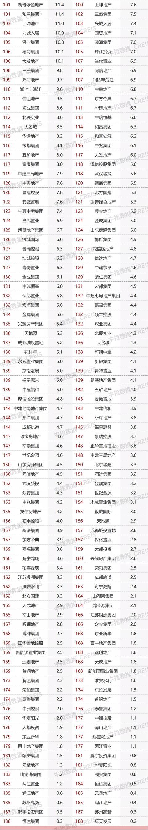 15家房企超百亿,TOP100房企销售额均值为61.8亿元