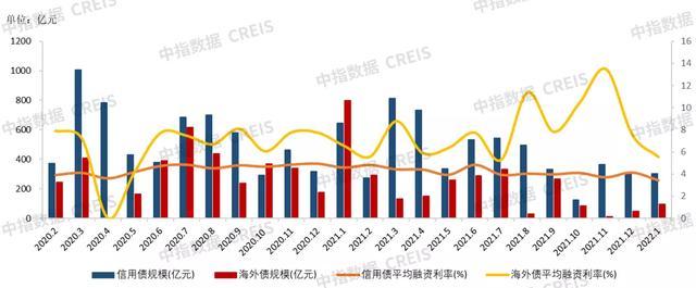 图:2020年-2022年1月房地产行业海外债、信用债发行情况