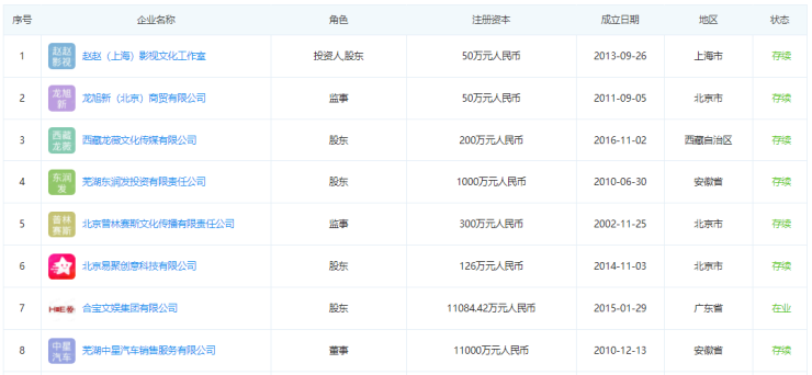 值得一提的是原本赵薇有14家关联企业,现在仅有7家存续、1家在业了。