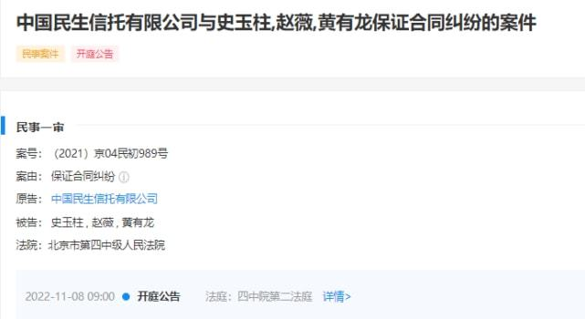 根据10月9号新增的开庭公告,中国民生信托有限公司与这三人对簿公堂,案由是保证合同纠纷。