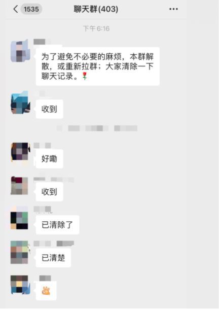 在通知发布的40分钟后,8日下午18时16分,深房理会员群有群友发布消息称,“为了避免不必要的麻烦,本群解散,或重新拉群;大家清除一下聊天记录。”