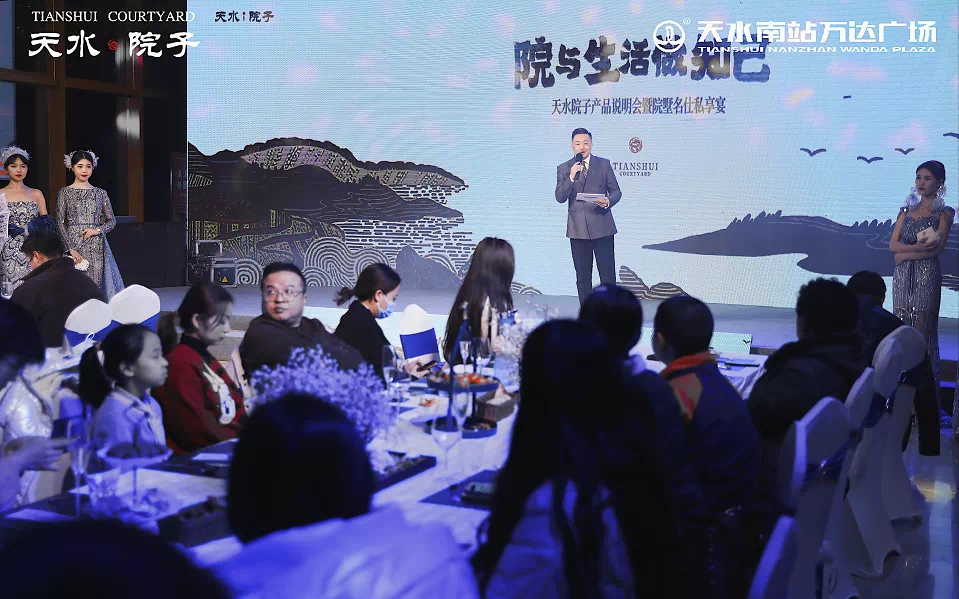 城市在发展中不断更新,对于未来的热爱与期待,总是值得我们去尽情想象和憧憬。席间,天水南站万达广场销售副经理仰震先生率先登台致辞并做精彩项目讲解。仰经理非常感谢各位来宾的到来,并从专业角度为来宾娓娓到来天水院子的设计理念与产品细节。